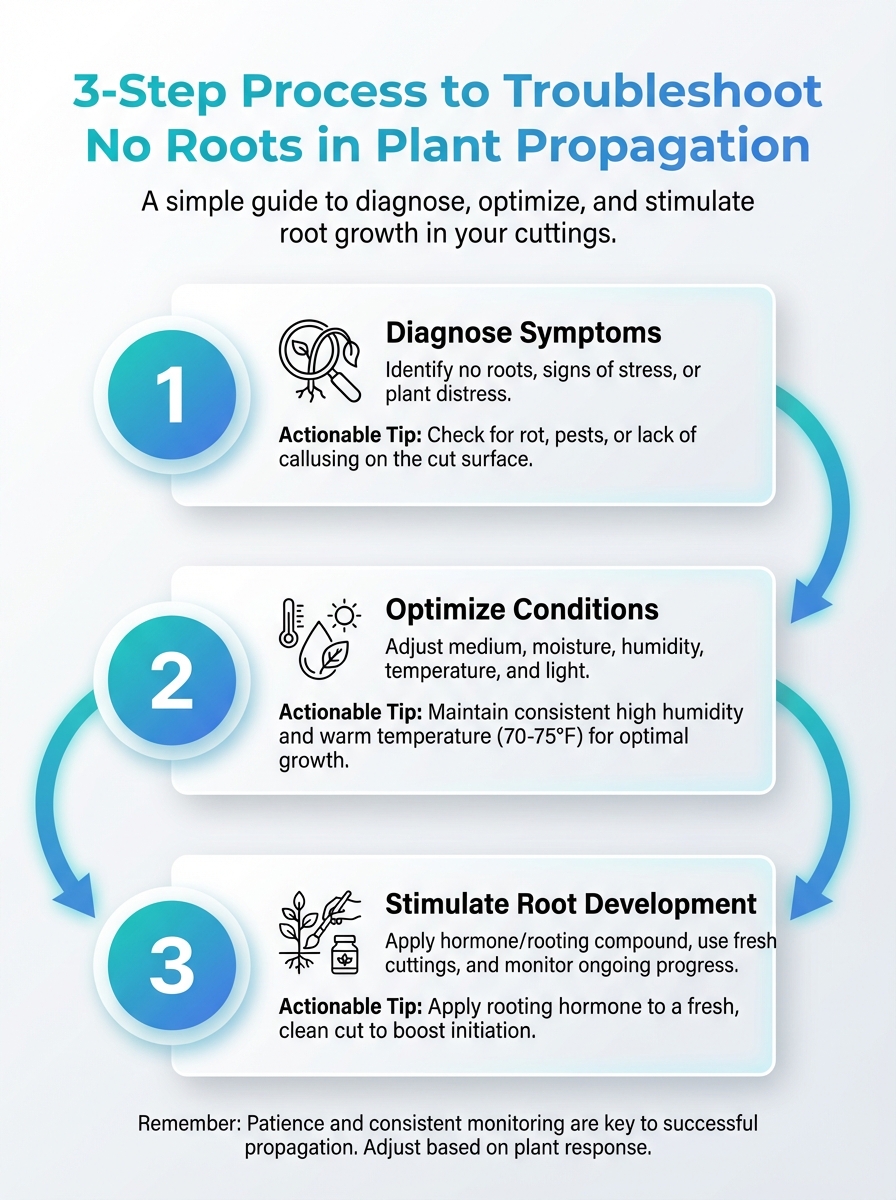 A concise 3-step guide to troubleshoot no-root outcomes in plant propagation. Learn how to inspect cuttings, verify the medium, and optimize environmental factors.